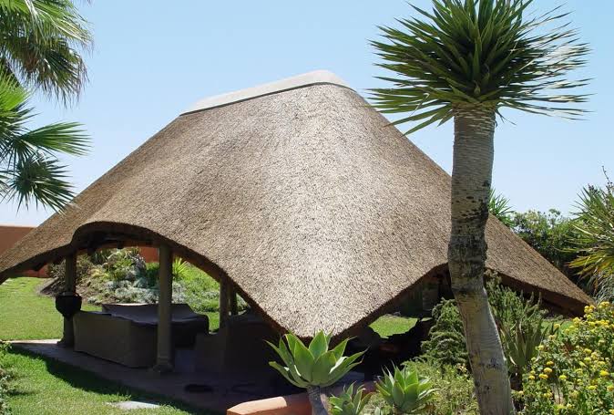 A traditional style of roofing using dry vegetation such as grass straw,coconut stems and leaves or reeds to insulate and shed away water,wind and the sun. Thatched roofs have limited lifespans, with the various reeds that make up the thatching known to last anywhere between 10 and 60 years depending on exposure to the elements, humidity, location, and proximity to trees.